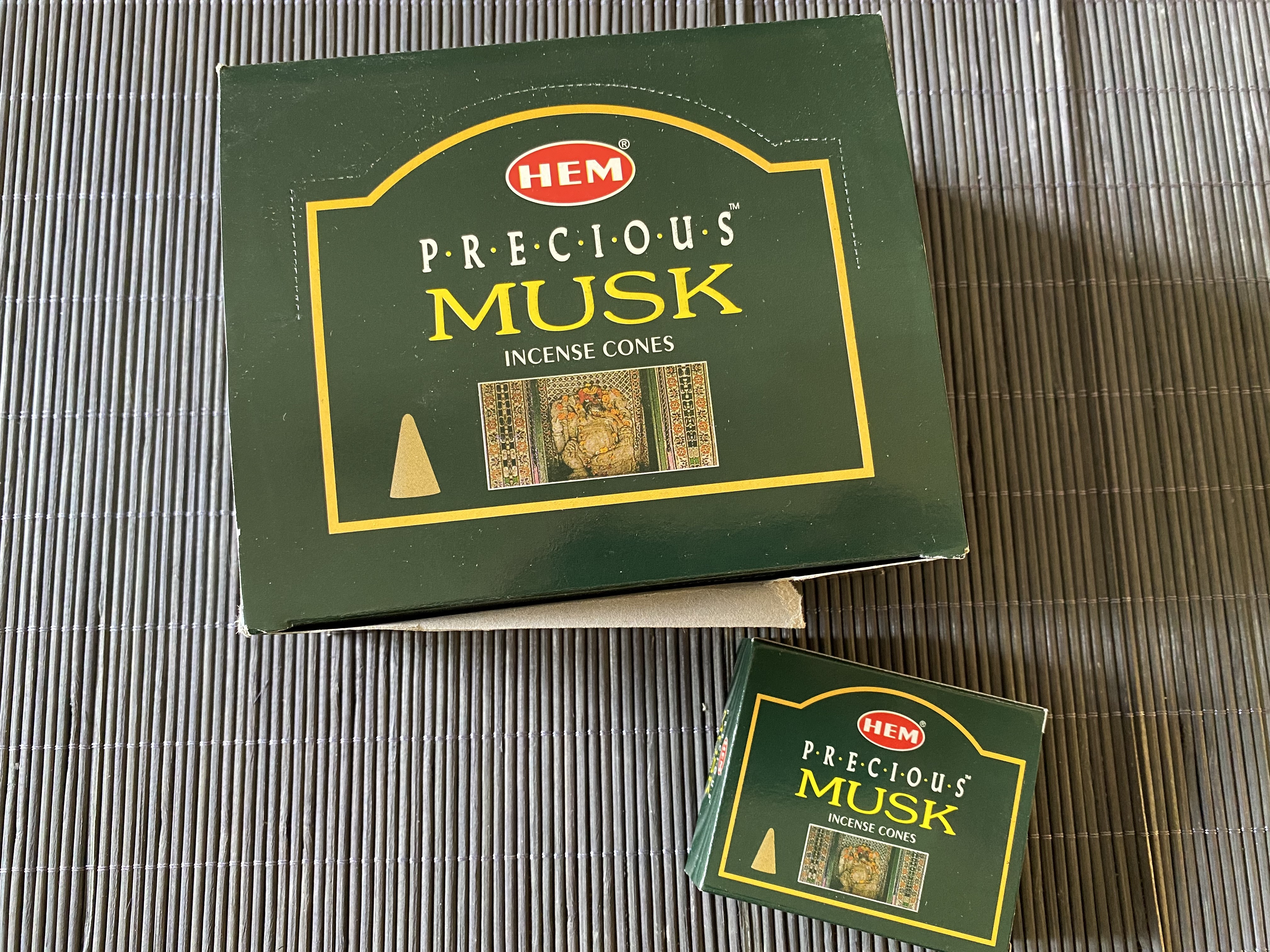 L'encens Hem Musc Précieux, est un encens harmonisant, qui favorise la créativité et la réflexion. Son odeur est subtile avec des petites touches épicées, poivrées et sucrées.