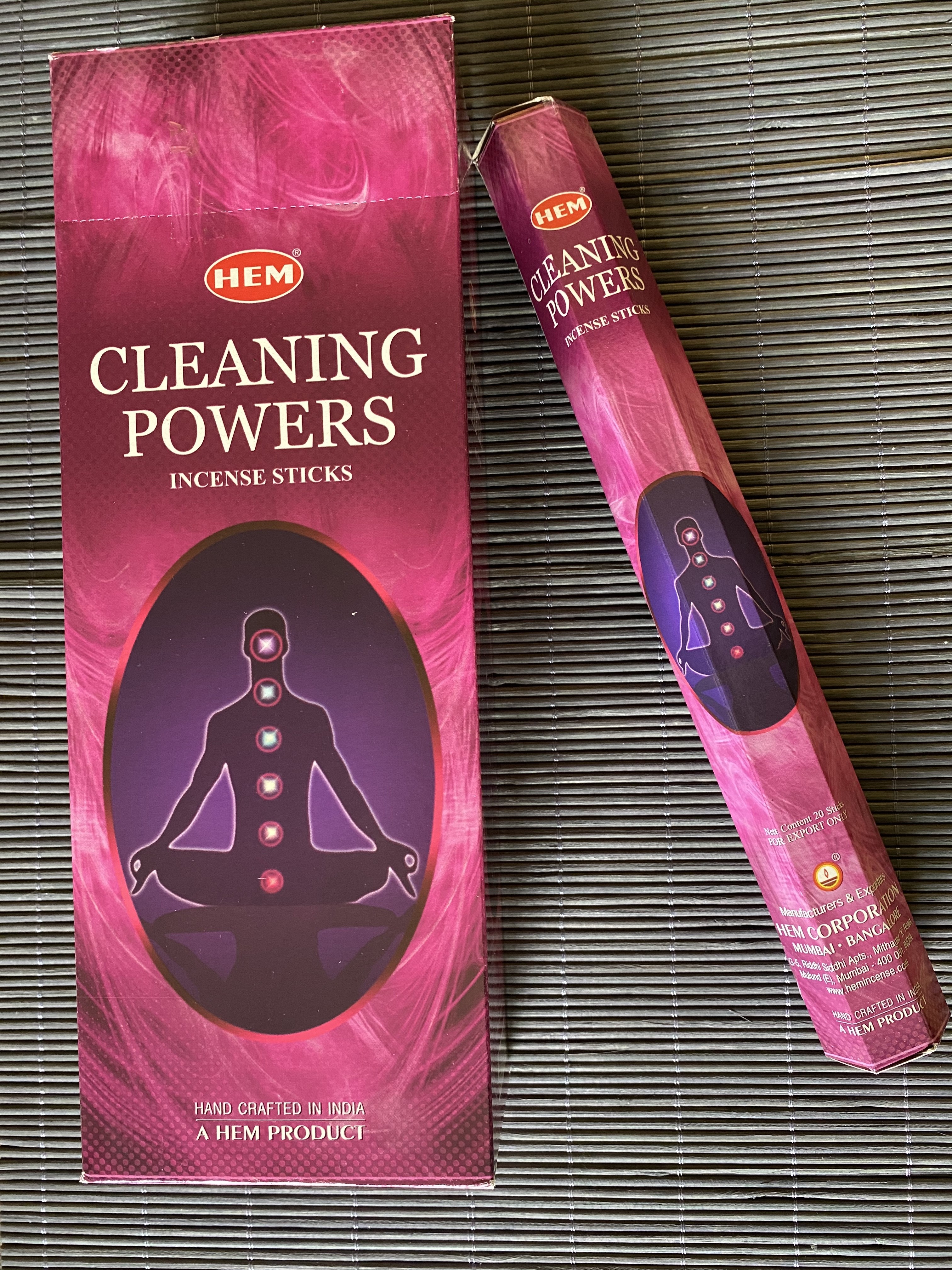 Encens HEM Nettoyage des chakras "cleanning powers". Cet encens permet de purifier vos chakras, calme l'agitation de l'esprit, apporte l'apaisement. C'est un encens de soins qui stimule  les énergies vitales, et apportent un meilleur équilibre dans le corps et l'esprit. L'harmonie se fait entre soi et les autres.