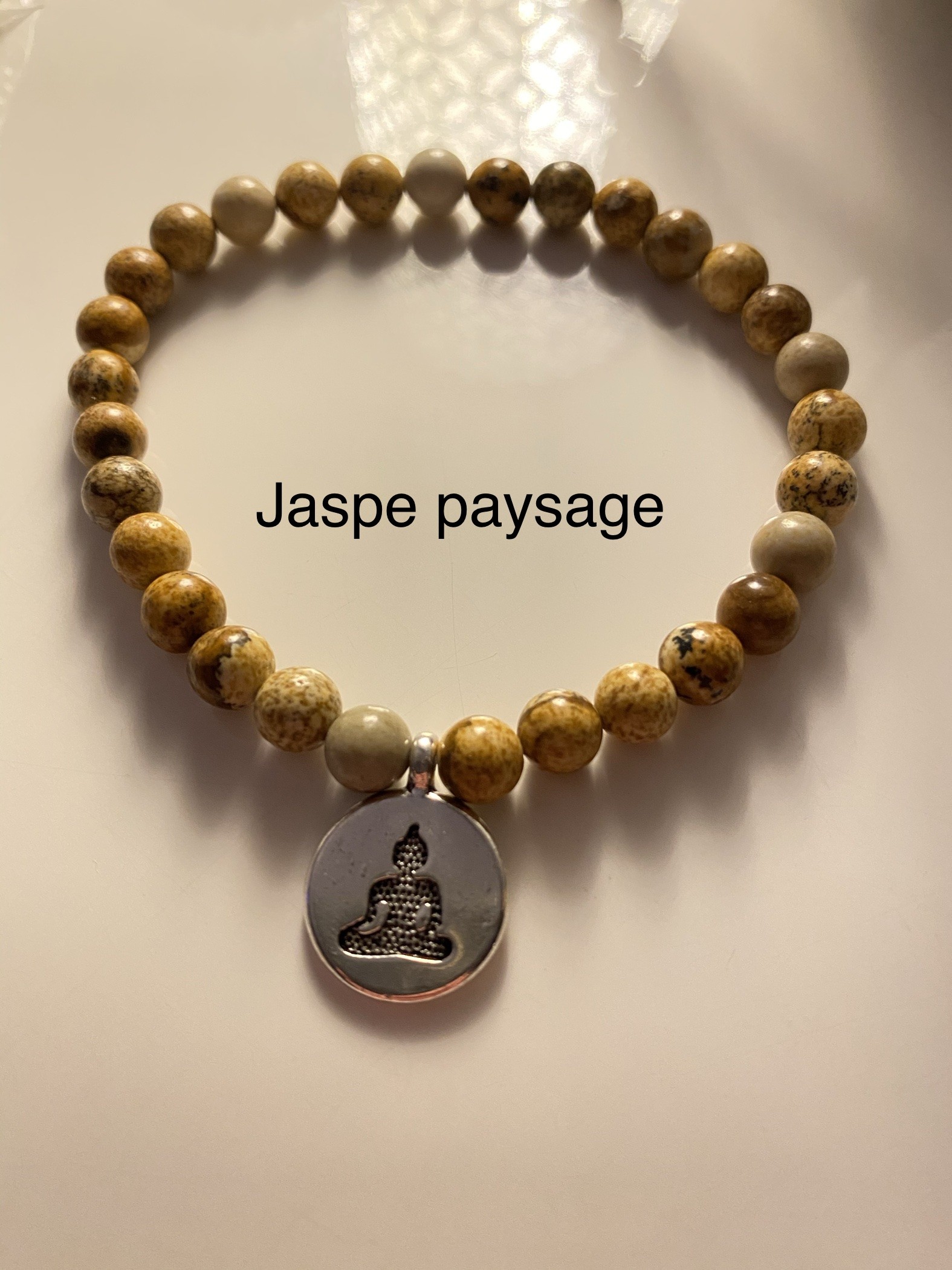 Profondément ancré à la Terre, le jaspe paysage peut aider sur le plan spirituel à déceler des sources d’énergie, qui aident par exemple à positionner une maison ou un nouveau bâtiment.