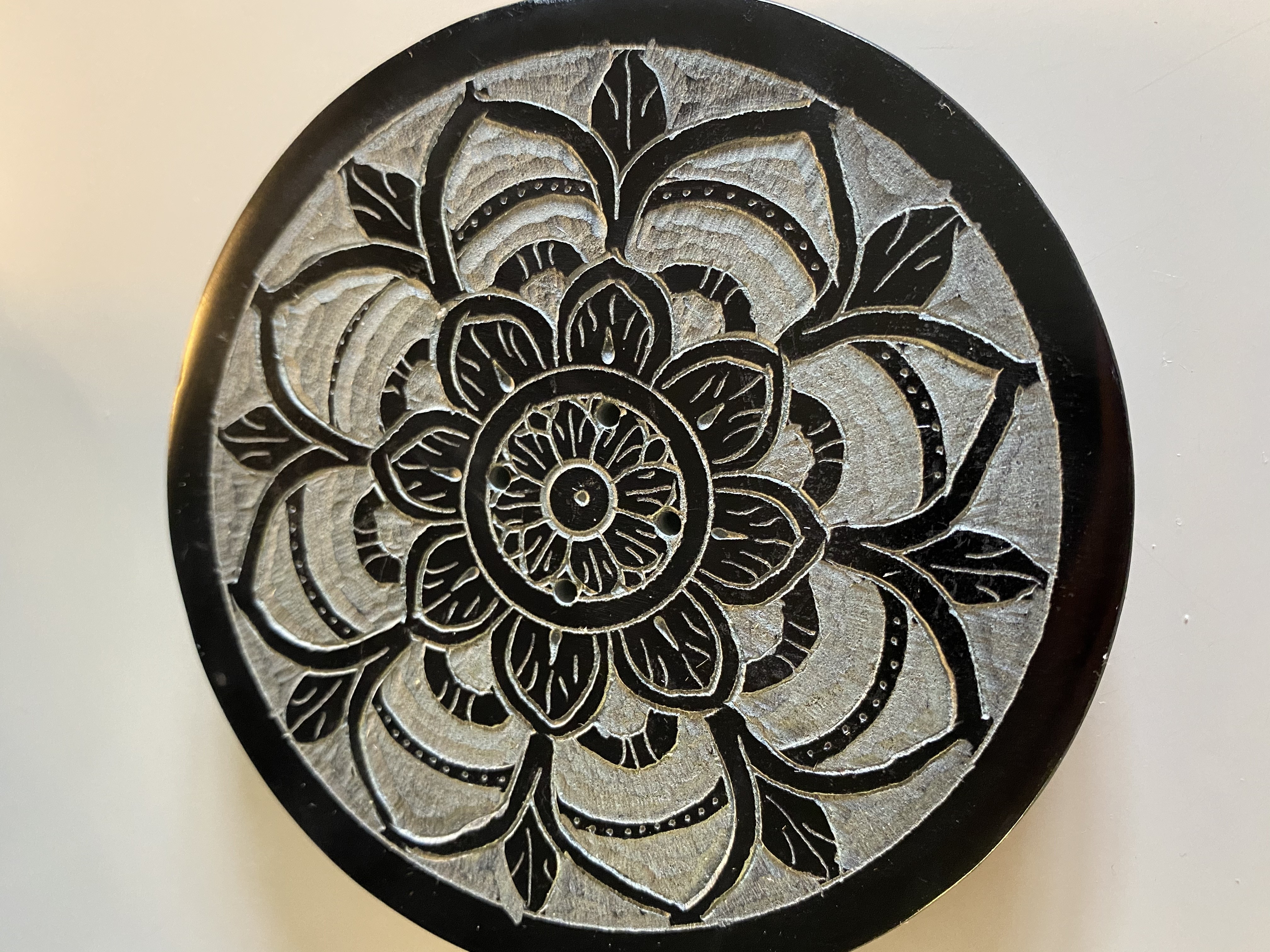 Porte encens en pierre de savon noire à motif