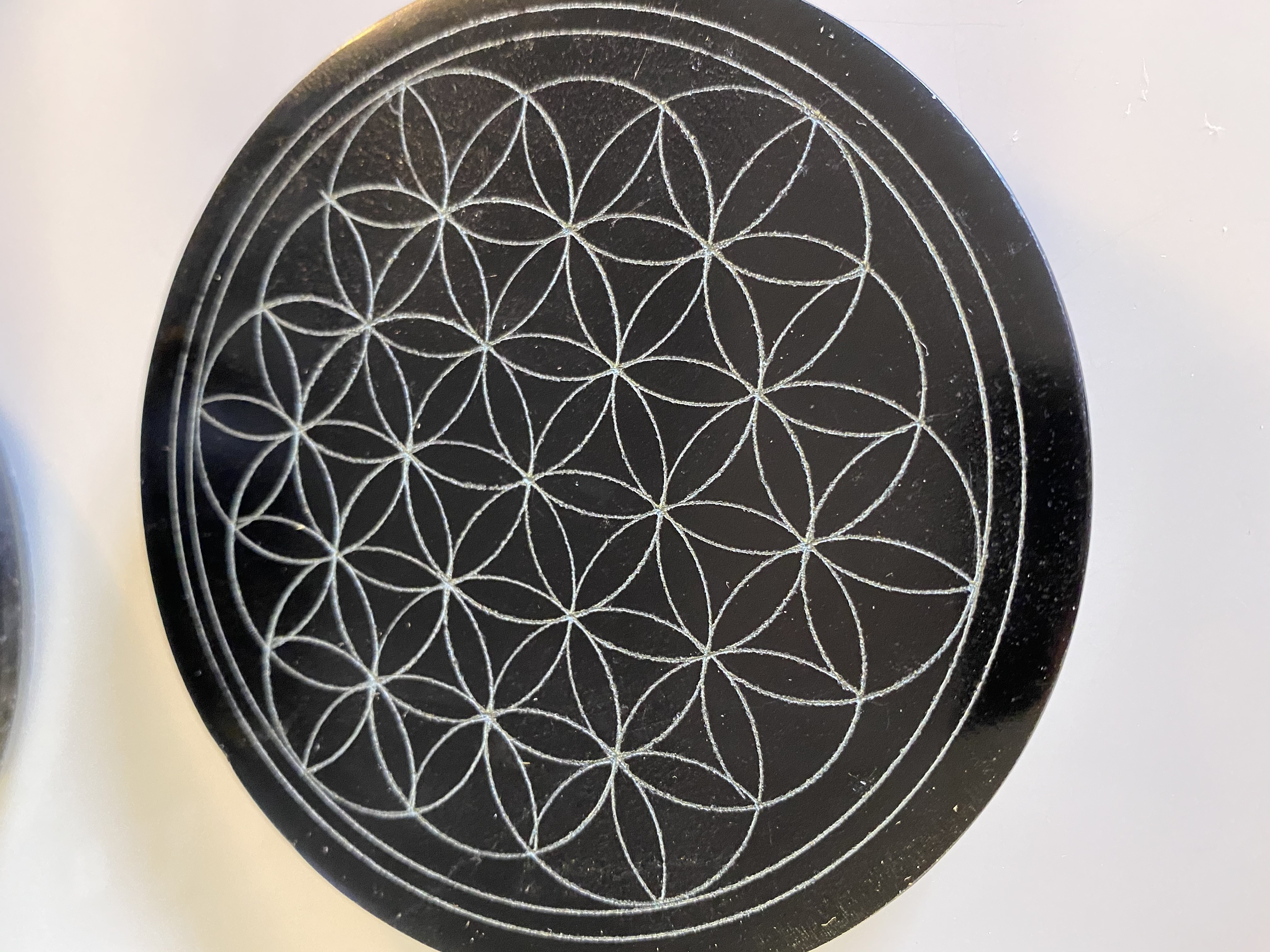 Plaque énergisante en pierre noire fleur de vie